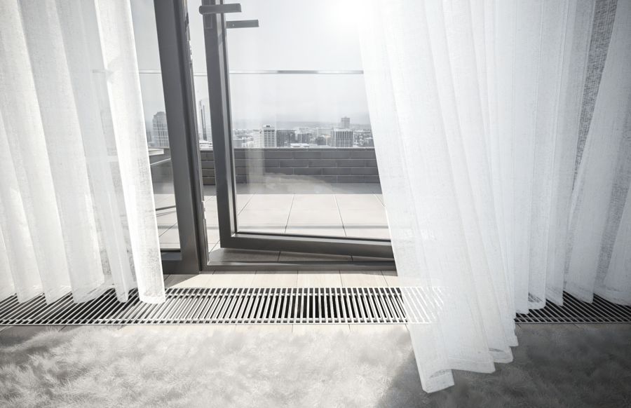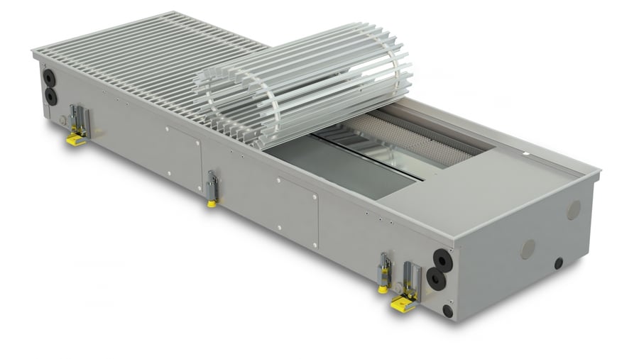 Trench heater with fan for heating, cooling and ventilation FCHV4 200-ALS with roll-up silver colour aluminium grille
