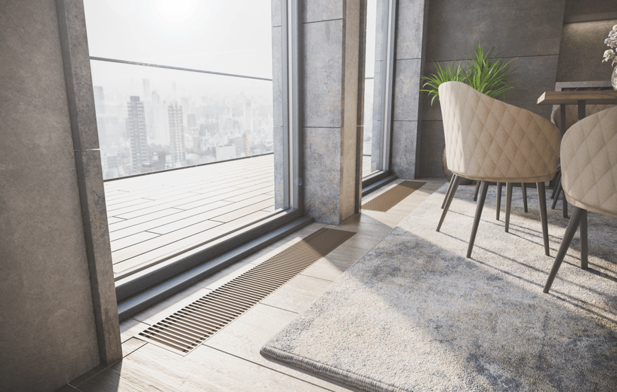 Trench heater with natural convection FC 100-22-9-AL10 with roll-up brown colour aluminium grille