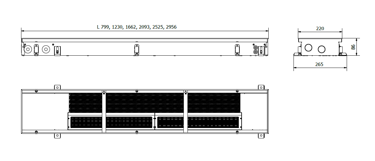 Convectors are equipped with durable stainless steel casings, ensuring longevity and reliable operation even in high-traffic areas. The design is adapted for pedestrian loads – the convector can be safely walked on and withstands the weight of several adults.