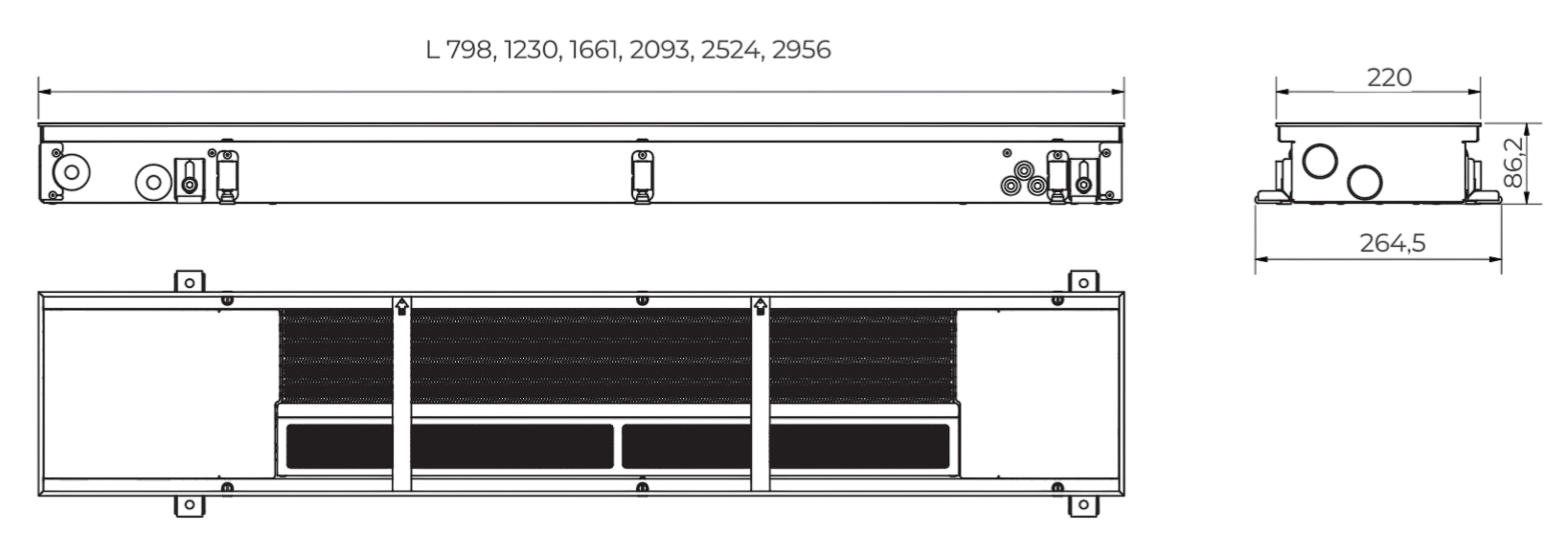 Konvektoriai komplektuojami su tvirtais nerūdijančio plieno korpusais, užtikrinančiais ilgaamžiškumą ir patikimą eksploataciją net intensyviai naudojamose zonose. Konstrukcija pritaikyta pėsčiųjų apkrovoms – konvektoriumi galima saugiai vaikščioti, jis atlaiko kelių suaugusių žmonių svorį.