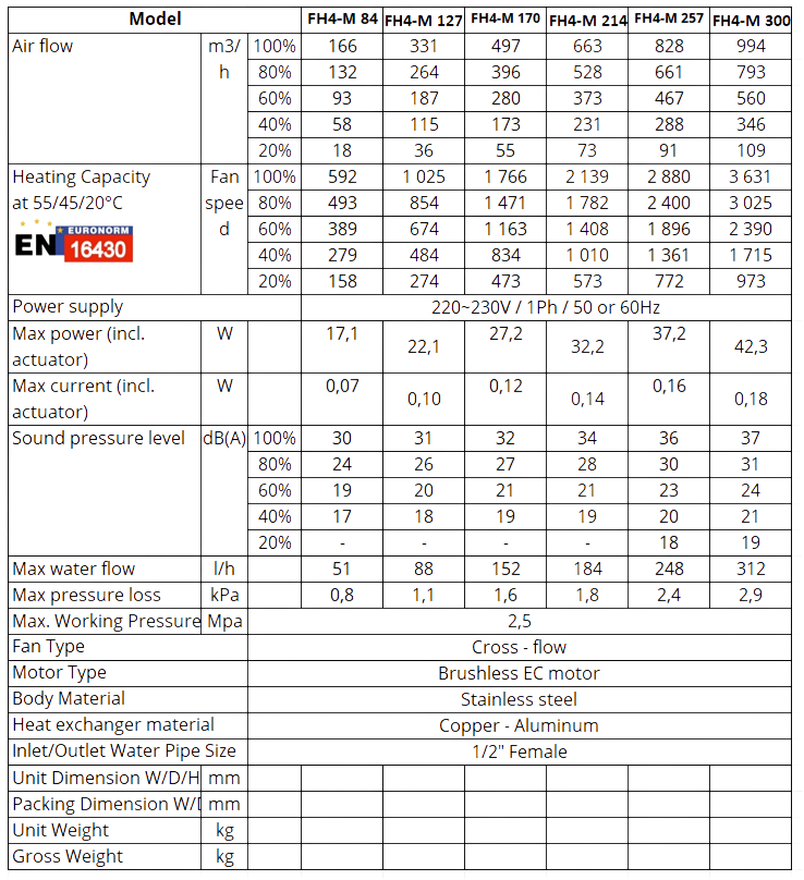FH4-M grindiniai konvektoriai pasižymi didele šilumine galia kompaktiškuose matmenyse ir yra suprojektuoti patikimam darbui patalpose, kuriose keliami ypač griežti akustiniai reikalavimai. Dėl itin žemo triukšmo lygio šie konvektoriai sėkmingai eksploatuojami tūkstančiuose miegamųjų, viešbučių numerių ir gyvenamųjų patalpų, užtikrinant komfortą be girdimo foninio triukšmo.