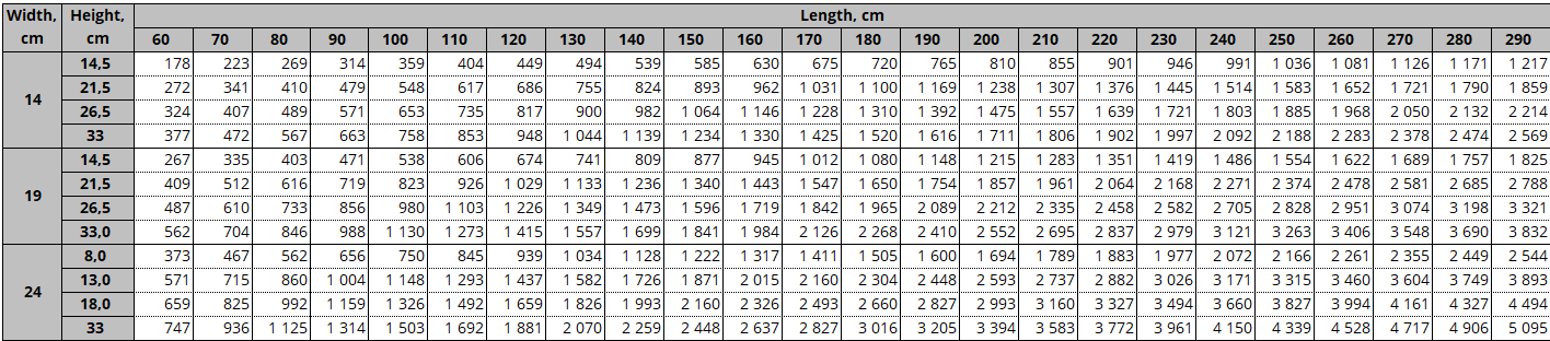 Platus dydžių ir šiluminių galių pasirinkimas – 288 modeliai